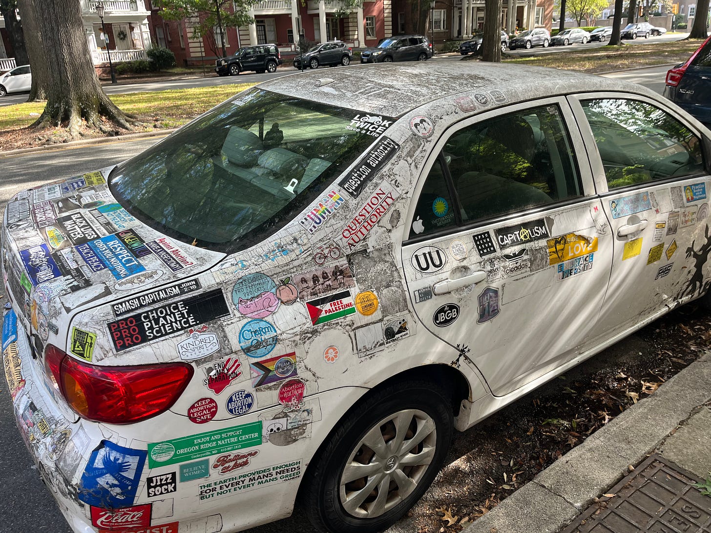 Many American companies have abandoned these political festivals as policies, but the various emblems of progressivism can be found all around, from the entrance to my hotel in Raleigh, North Carolina, stickered all over the bins in Charleston, and outside various Episcopalian churches; wherever wealthy people live, they are keen to demonstrate their philosophy that everyone is welcome. American liberals and British Pakistanis seems to be the only groups on earth keen to advertise their political views on their cars.