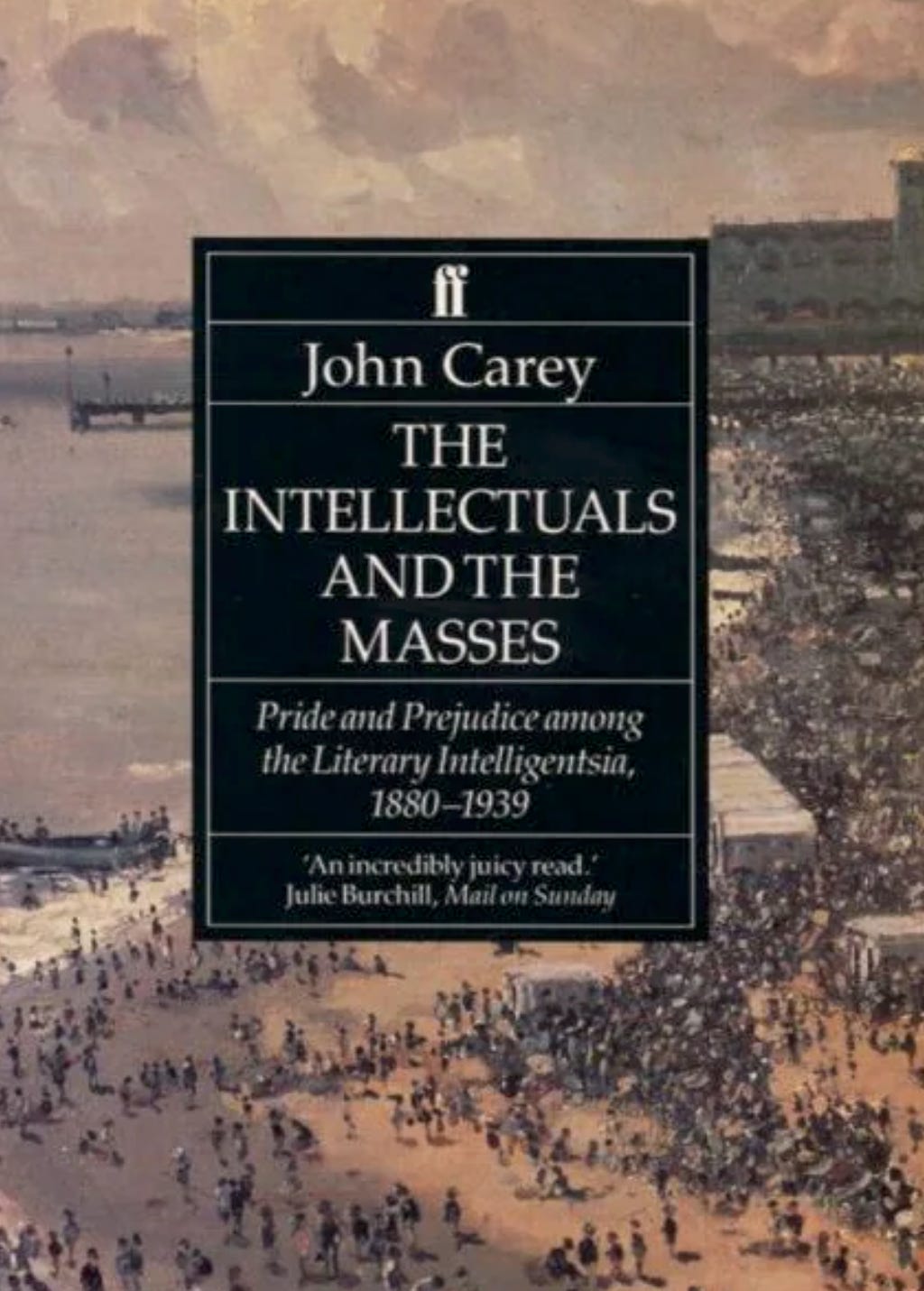 Indeed, Carey was best known for his work The Intellectuals and the Masses, published in 1992, which flayed them quite mercilessly. Originally appearing as a series of lectures, the book was subtitled ‘pride and prejudice among the literary intelligentsia’, and in it Carey argued that writers were driven by disgust and contempt for ordinary people. This was despite or perhaps because of their progressive politics for, as Orwell noted, writers tend to be ‘left-wing by intellect but right-wing by temperament’, and often possessing the worst characteristics of the right – snobbery and venality.