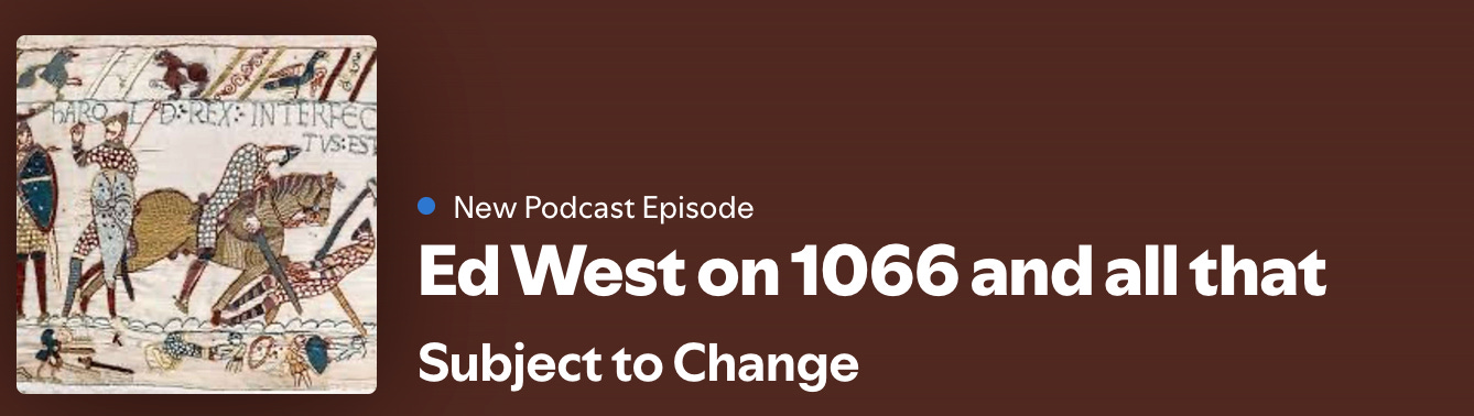 Tom and Dom, however, aren’t the only show in town. I highly recommend Russell Hogg’s Subject to Change, and his latest episode features none other than me, also available on Apple podcasts, talking about one of my favourite subjects, the Norman and French influence on England. I’ve written a number of posts on the cultural influence of the Normans, how the Conquest changed our language and even how it affected our naming patterns. The book can be found here and you can review on Goodreads here.