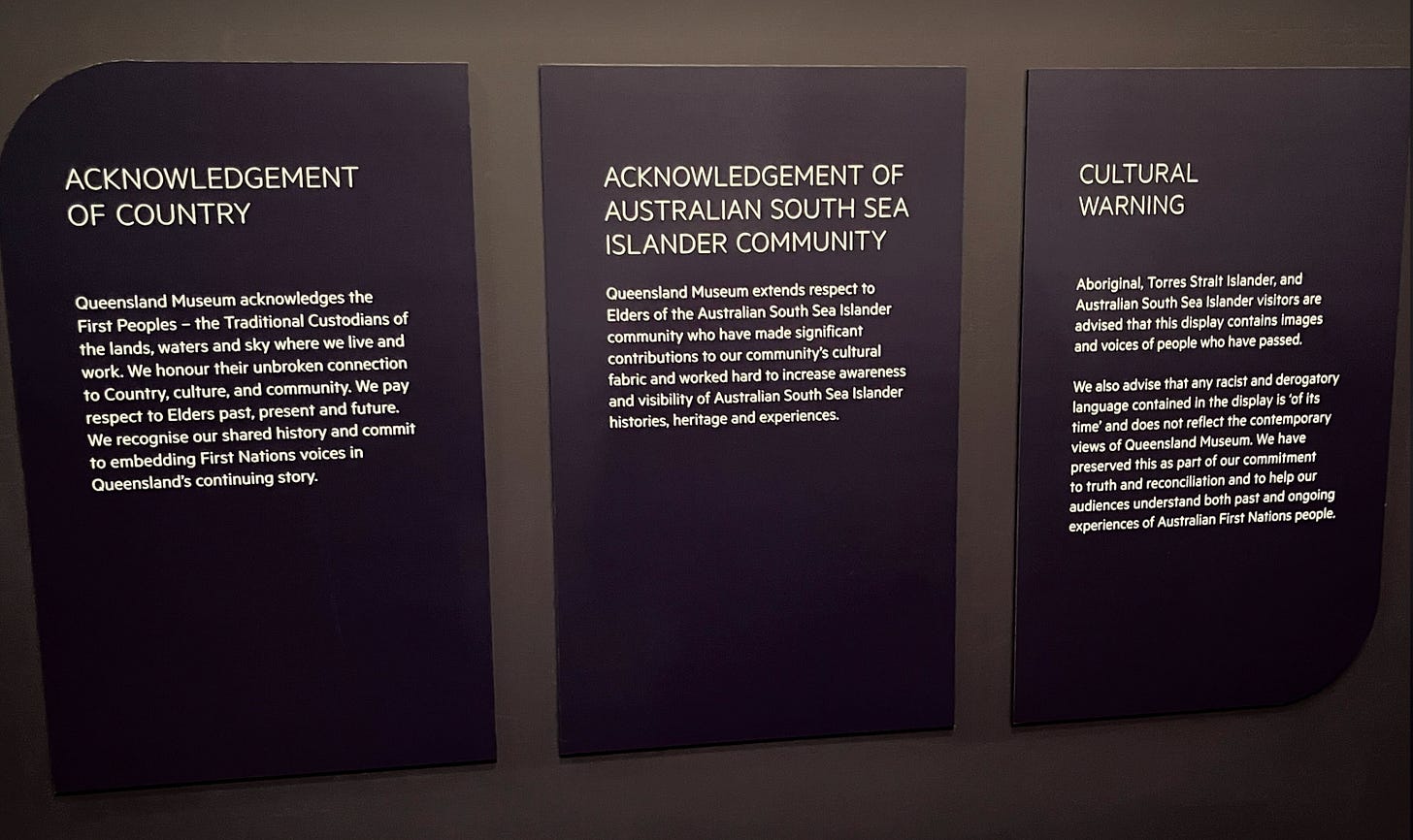 The same trend is found in Australian museums, similarly colonised by American academia, which naturally carry land acknowledgements.