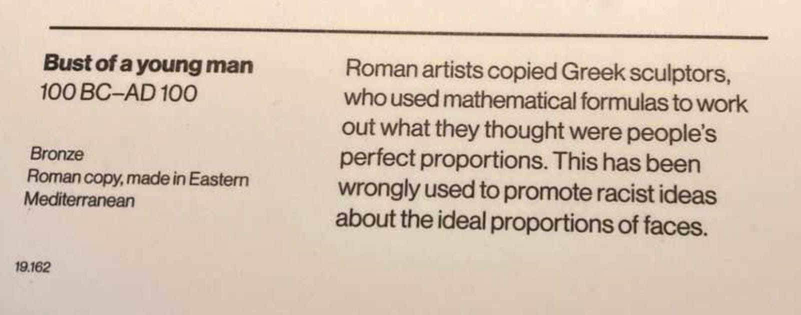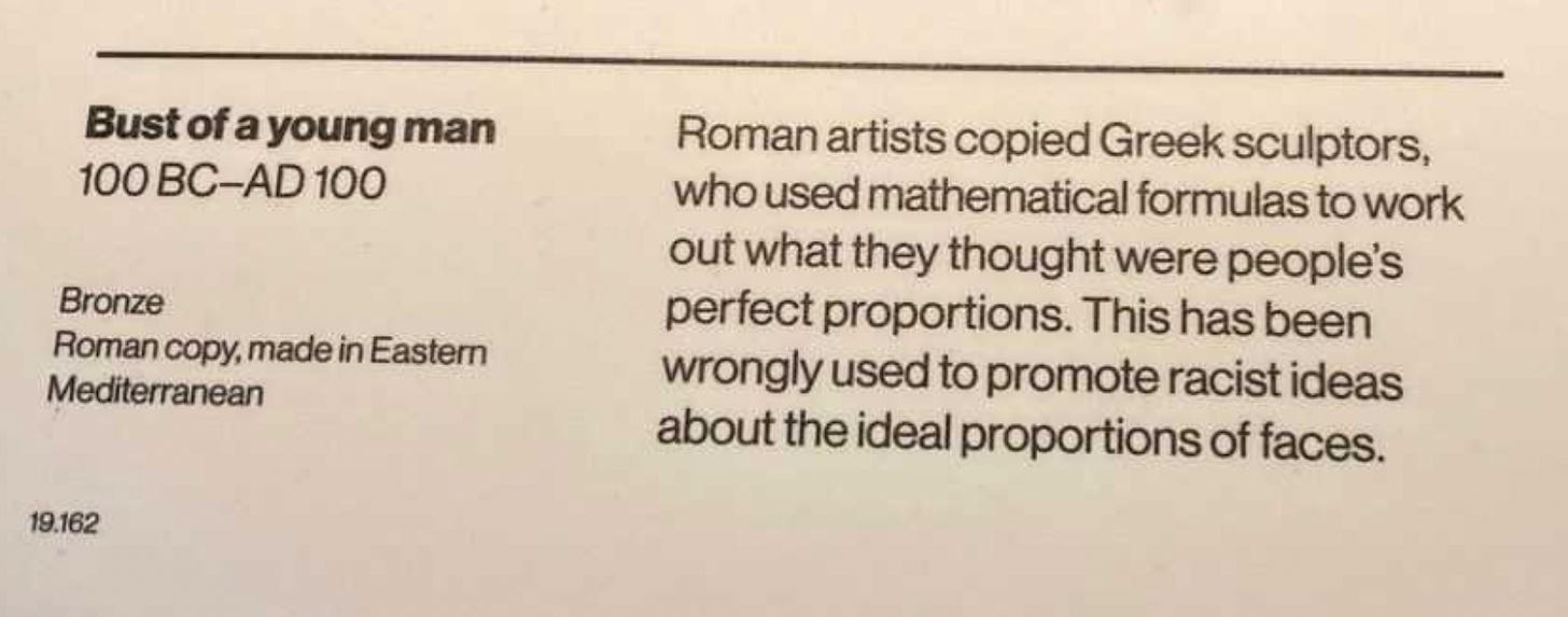 The man behind the curation had, just a year or so earlier, accused the Tories of ‘trying to ignite a fake “culture war” in the arts, museums and heritage sector.’ Remember, they’re fighting a culture war; we’re just dismantling enduring colonialism and white infrastructure.