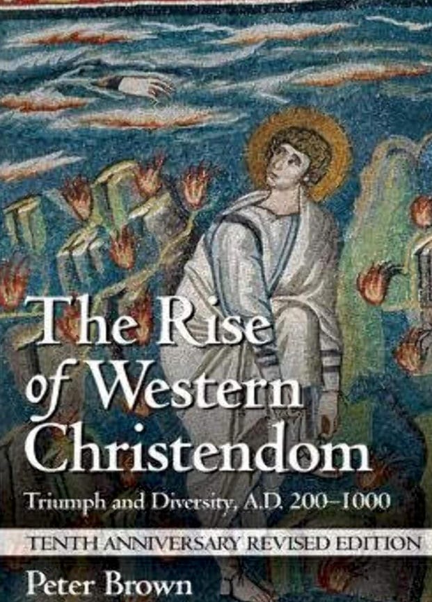 Among the best known are The World of Late Antiquity (1971) and The Rise of Western Christendom (1996). The former tells of a society in which structures and institutions are transforming, and in some ways collapsing; it is dominated by the struggle between two worldviews and the eventual triumph of Christianity over its polytheistic, conservative rival. The latter focuses more on the world that arose in its place, although there is much overlap - both are brilliant.