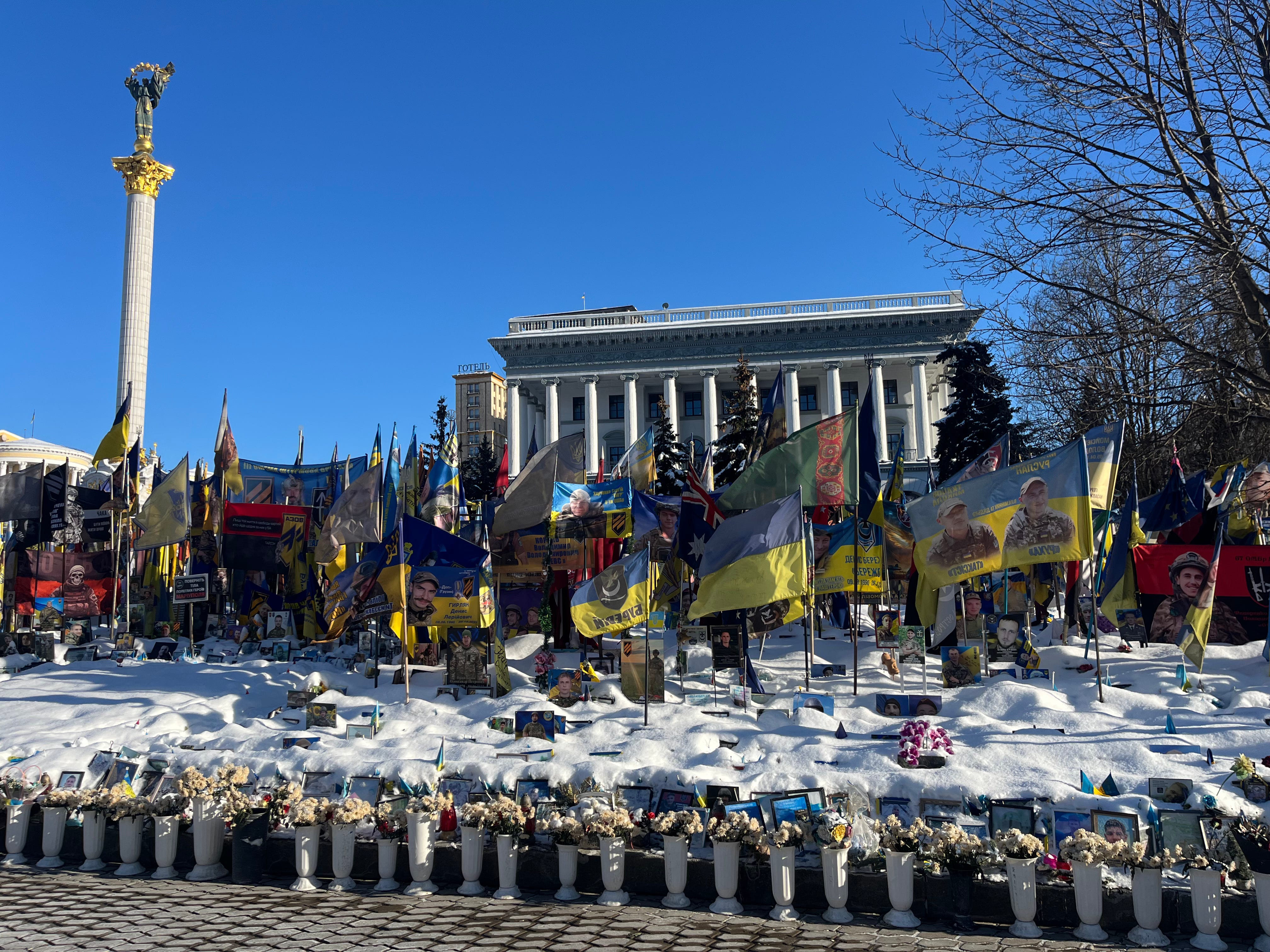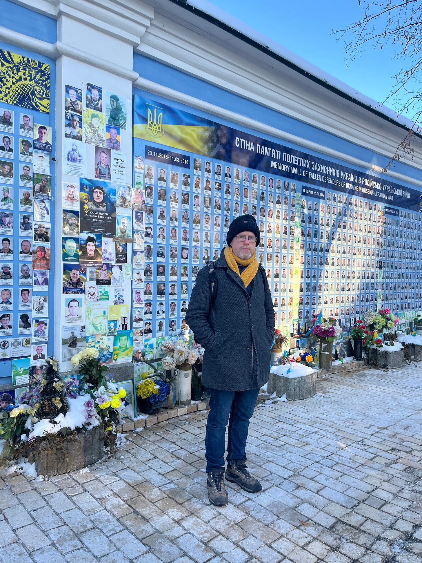 The church is actually new, having been demolished by the communists in the 1930s and rebuilt after independence; some small elements of the original structure remain, including subterranean remnants from its original foundation. By the entrance to the compound is a monument to the Holodomor, Stalin’s man-made famine, which took the lives of maybe 4 million people here. On the other side is the Wall of Memory of the Fallen for Ukraine, a display of photographs for every soldier killed since the war started in 2014; no one is forgotten, and it now stretches endlessly along the edge of the compound. Boris Johnson came here and stood with Volodymyr Zelensky in the summer of 2022, a time when Britain was leading the western nations in financial and military support for Ukraine.