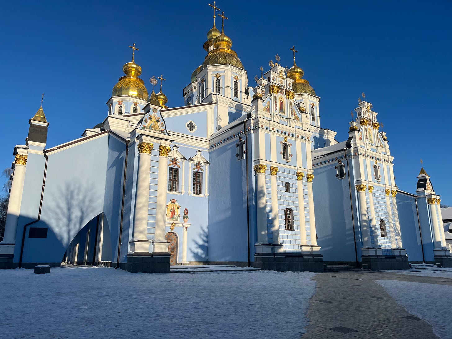 In Maidan Nezalezhnosti, or Independence Square, he recalls his memories of taking part in the ‘Euromaidan’, the protest which began in November 2013, leading to the resignation of the Kremlin-aligned Yanukovych and, soon after, the Russian takeover of Crimea. That was the start of the long war in the east of the country. During the 2013-4 revolution over 100 protesters were killed, and many of the wounder found shelter at St Michael’s Golden-Domed Monastery, one of the city’s many beautiful religious buildings, and dating back to the early 12th century. Roman’s son was baptised here, and we light three candles each. The first, he says, is for Ukraine.