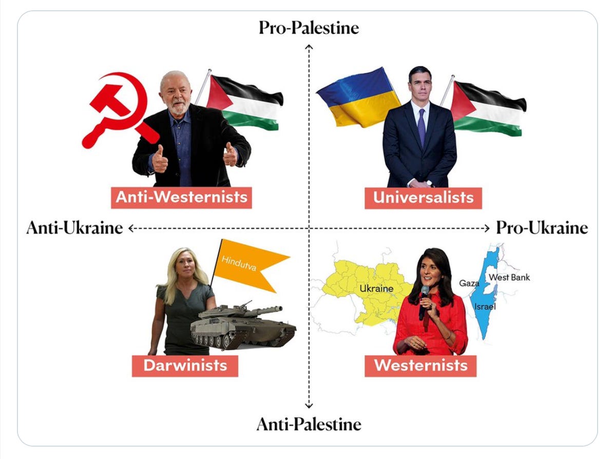 Support for Palestine and Israel has come to correlate quite strongly with the Left and Right in Britain, while the Ukraine/Russia split tends to be more one of centre v extremes. Sean Penn swerved the Oscar ceremony this year to hang out with Volodymyr Zelensky; Robert De Niro recently gave a talk of encouragement to the Ukrainians. I wouldn’t normally agree with the world’s acting community on political issues, and in the polarised political climate of the US it is natural that people feel suspicion about whatever their opponents support. Yet Republicans are only somewhat less hostile to the Russian regime than Democrats are, even if it’s notable how people follow partisan cues from their leader. In Britain, support for Ukraine is almost universal, and even Reform voters – the least anti-Russian- tend to favour continuing aid to Ukraine.