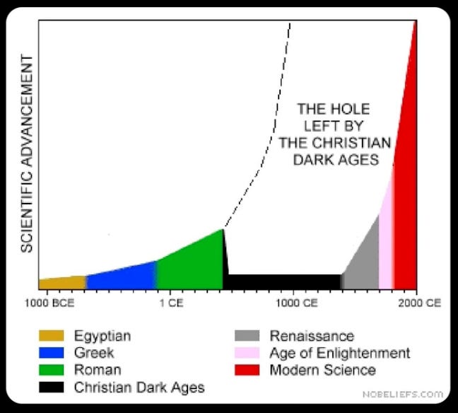 Yet while the question of when the medieval world overtook Antiquity feels hugely important, it’s hard to weigh up opinions and data. Luckily, or unluckily, we’re experiencing another take-off right now, even if it a very disconcerting one, with artificial intelligence - so for the first time I decided to ask AI to help with research, in this case Claude.ai. I’ve cited Claude for all the suggestions made by this vast, terrifying library of knowledge, but all of the writing is original.